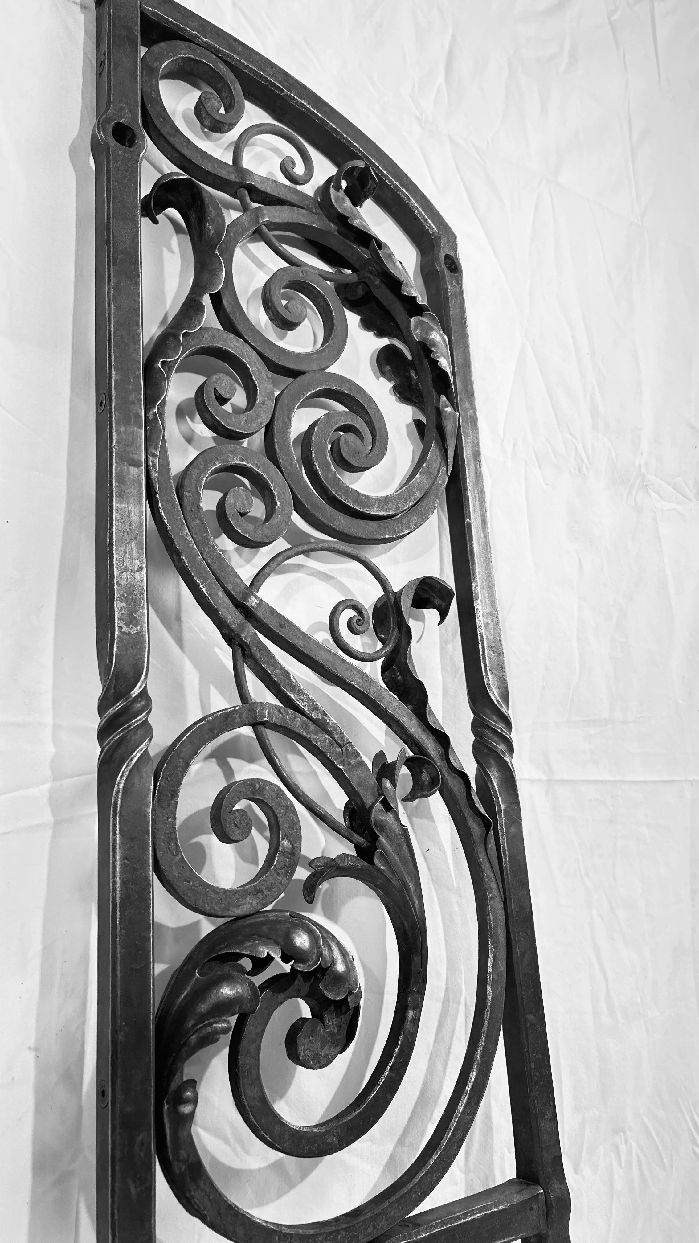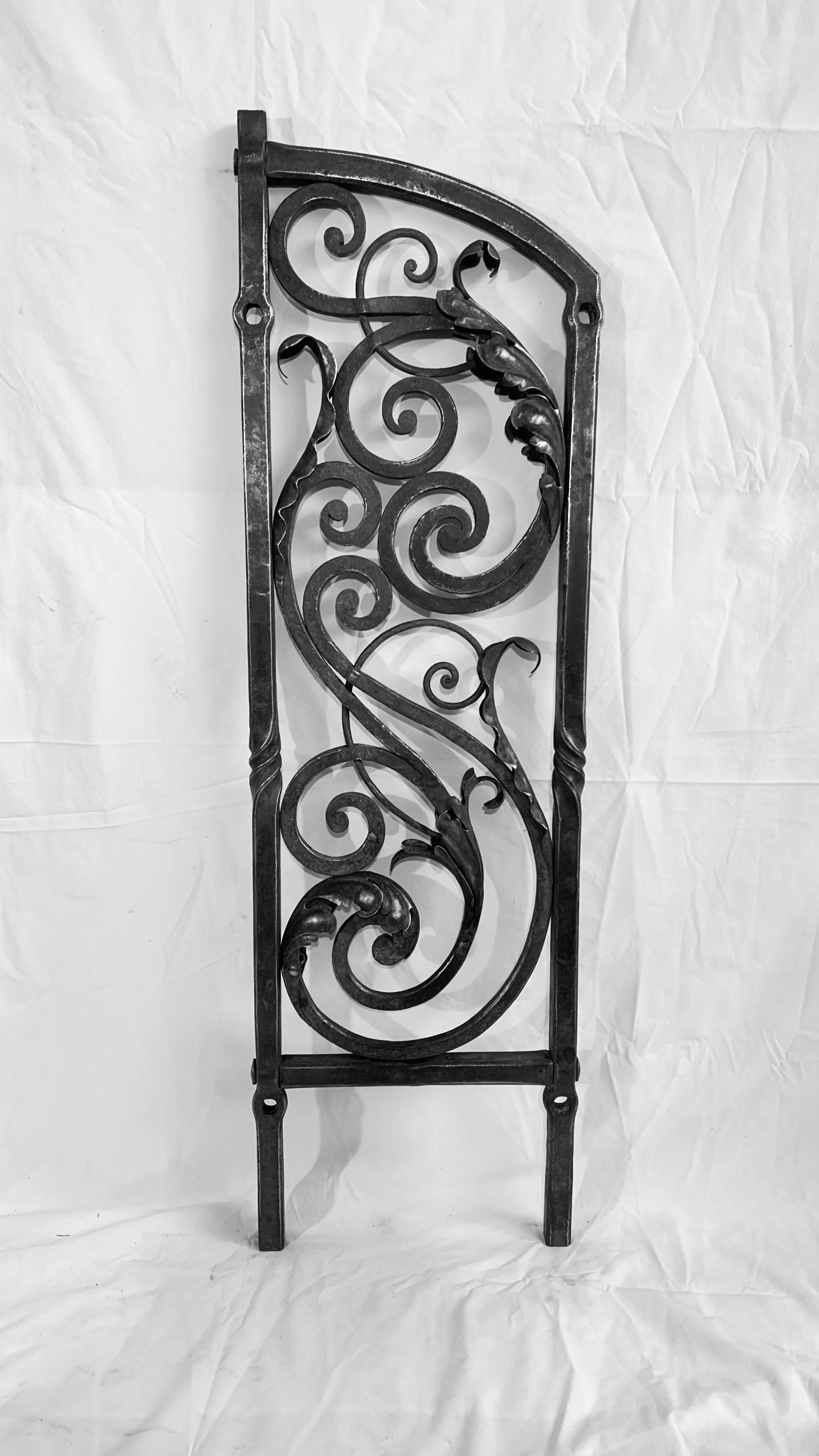 A hand-forged grille inspired by Louis XIV-era French ironwork. Executed using traditional joinery and repoussé detailing, the piece explores layered volutes and tapering scrolls without the use of welding — emphasizing form, rhythm, and material discipline.