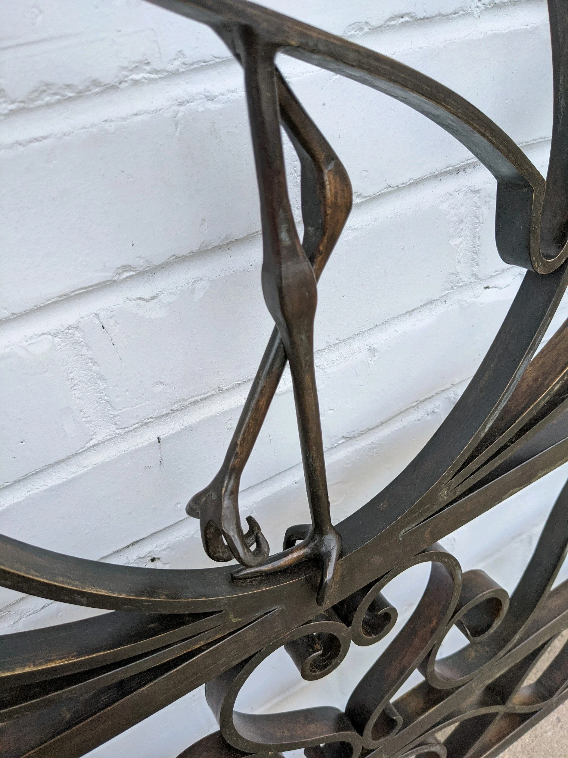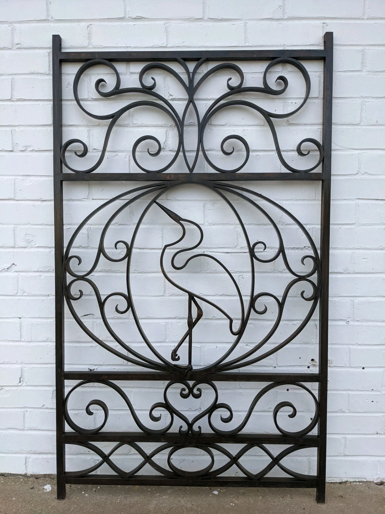 Fabricated in architectural bronze, this grille draws from the ornamental style of Philip Simmons. Featuring a stylized crane and flowing scrollwork, it blends Lowcountry design language with traditional forging techniques.