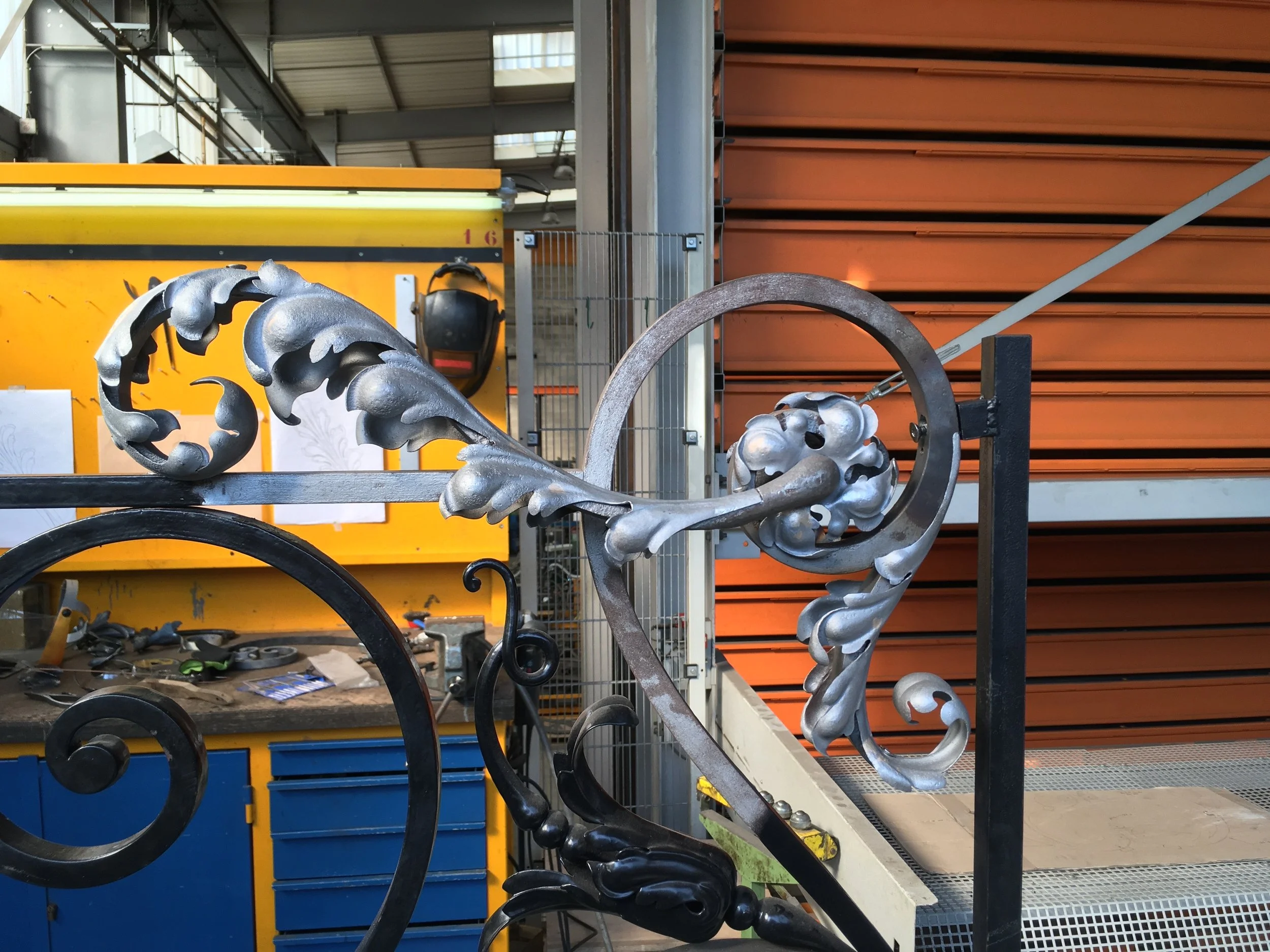 The project required precise adaptation to the stylistic language of the original ironwork and a deep understanding of ornamental French metalwork.